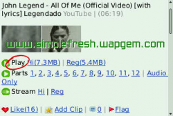 Saat keinginan kuat untuk mendowload video-video idola jangan sampai terlewatkan, namun apa daya Blackberry 8520 tidak bisa mendownload video di youtube meskipun sudah di save Link Urlnya, atau di share ke contact BBm dengan maksud agar bisa di download dan endingnya gagal juga, nah saat ente googling dengan mengetikan "Cara Download Video Youtube Pake BB 8520" terus kebetulan ketemu site dan masuk di site kecil serta sederhana ini, jadi begini cara mudahnya, kita gunakan vuclip, saat timeline vuclip sudah terbuka lalu pada form search vuclip ketik video apa yang akan di download, sebagai Contoh "Jhon Legend-All Of Me" maka di sana kita akan di hadapkan pada banyak pilihan, kalo ane klik yang Full video ; Lihat Screenshot